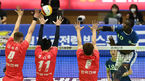 [OSEN=수원, 최재현 기자] 26일 수원체육관에서 도드람 2022-23 V-리그 남자부 플레이오프 2차전 현대캐피탈과 한국전력의 경기가 열렸다.1세트 한국전력 타이스가 현대캐피탈 블로커를 피해 공격을 시도하고 있다. 2023.03.26 / hyun309@o