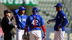 [OSEN=부산, 이석우 기자] 26일 부산 사직구장에서 2023 신한은행 SOL KBO리그 롯데 자이언츠와 한화 이글스의 시범경기가 열렸다. 한화 이글스 수베로 감독이 롯데 자이언츠에 4-1로 승리한 후 김서현 등 선수들과 하이파이브를 하고