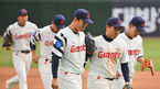 [OSEN=부산, 이석우 기자] 26일 부산 사직구장에서 2023 신한은행 SOL KBO리그 롯데 자이언츠와 한화 이글스의 시범경기가 열렸다. 롯데 자이언츠 김도규가 6회 수비를 마치고 동료들과 더그아웃으로 들어오고 있다. 2023.03.26 / foto0307@o
