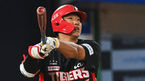 [OSEN=부산, 이석우 기자] 27일 부산 사직구장에서 2023 신한은행 SOL KBO리그 롯데 자이언츠와 KIA 타이거즈의 시범경기가 열렸다. KIA 타이거즈 김석환이 5회초 2사 1루 우월 2점 홈런을 치고 있다. 2023.03.27 / foto0307@osen.co.kr