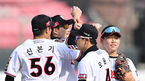[OSEN=수원, 김성락 기자] 27일 경기 수원KT위즈파크에서 2023 신한은행 SOL KBO리그 시범경기 KT 위즈와 NC 다이노스의 경기가 열렸다.이날 경기는 KT 위즈가 NC 다이노스를 상대로 2-0으로 승리했다. 승리가 확정된 순간 KT 선수들이 기