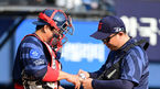 [OSEN=수원, 김성락 기자] 1일 오후 경기 수원시 수원KT위즈파크에서 ‘2023 신한은행 SOL KBO리그’ KT 위즈와 LG 트윈스의 개막 경기가 열렸다. 6회말 1사 만루 마운드를 방문한 KT 포수 박동원이 투수 박명근과 이야기를 나누고 있다.