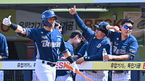 [OSEN=대구, 이석우 기자] 1일 대구 삼성라이온즈파크에서 2023 신한은행 SOL KBO리그 삼성 라이온즈와 NC 다이노스의 경기가 열렸다. NC 다이노스 선수들이 3회초 박민우가 득점하자 엄지척을 하며 기뻐하고 있다. 2023.04.01 / foto0307@osen