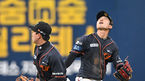 [OSEN=고척, 박준형 기자] 1일 오후 서울 구로구 고척스카이돔에서 ‘2023 신한은행 SOL KBO리그’ 키움 히어로즈와 한화 이글스의 개막전이 진행됐다. 3회말 이닝종료 후 선취 2타점 적시타를 기록한 키움 러셀이 박재상 3루 코치와