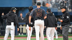 [OSEN=고척, 박준형 기자] 1일 오후 서울 구로구 고척스카이돔에서 ‘2023 신한은행 SOL KBO리그’ 키움 히어로즈와 한화 이글스의 개막전이 진행됐다. 3회말 한화 선발투수 스미스가 몸 이상 밝힌 후 자진강판하고 있다.. 2023.04.01 / so