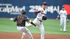 [OSEN=고척, 박준형 기자] 1일 오후 서울 구로구 고척스카이돔에서 ‘2023 신한은행 SOL KBO리그’ 키움 히어로즈와 한화 이글스의 개막전이 진행됐다. 1회초 1사 한화 정은원의 안타때 키움 안우진 선발투수가 1루 커버플레이 펼치