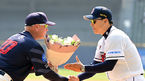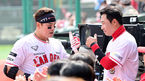 [OSEN=잠실, 지형준 기자] 1일 오후 서울 잠실야구장에서 ‘2023 신한은행 SOL KBO리그’ 두산 베어스와 롯데 자이언츠의 개막 경기가 열렸다.경기에 앞서 롯데 서튼 감독과 두산 이승엽 감독이 인사를 나누고 있다. 2023.04.01 /jpnews@osen