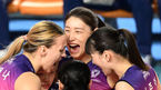 [OSEN=김천, 지형준 기자] 2일 오후 김천실내체육관에서‘도드람2022-2023 V리그 여자부 챔피언결정(5전 3선승제)흥국생명과 한국도로공사의 3차전이 열렸다.흥국생명 이주아, 김연경이 1세트를 따내며 기뻐하고 있다. 2023.04.02 /jp
