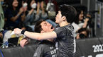 [OSEN=천안, 조은정 기자] 3일 오후 천안유관순체육관에서 ‘도드람 2022~2023 V리그’ 남자부 챔피언결정전(5전3승제) 대한항공과 현대캐피탈의 경기가 열렸다.3세트 대한항공 김규민, 정지석이 세트를 따내며 기뻐하고 있다.