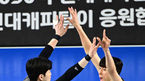 [OSEN=천안, 조은정 기자] 3일 오후 천안유관순체육관에서 ‘도드람 2022~2023 V리그’ 남자부 챔피언결정전(5전3승제) 대한항공과 현대캐피탈의 경기가 열렸다.1세트 현대캐피탈이 득점에 환호하고 있다. 2023.04.03 /cej@osen.co.kr