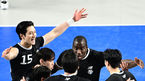 [OSEN=천안, 조은정 기자] 3일 오후 천안유관순체육관에서 ‘도드람 2022~2023 V리그’ 남자부 챔피언결정전(5전3승제) 대한항공과 현대캐피탈의 경기가 열렸다.1세트 대한항공 곽승석이 정지석과 득점에 환호하고 있다. 2023.04.03 /ce