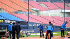 [OSEN=잠실, 김성락 기자] 5일 오후 서울 잠실야구장에서 ‘2023 신한은행 SOL KBO리그’ 두산 베어스와 NC 다이노스의 경기가 열린다.경기에 앞서 관계자들이 그라운드를 정비하고 있다. 2023.04.05 /ksl0919@osen.co.kr