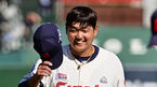 [OSEN=부산, 이석우 기자] 9일 부산 사직구장에서 2023 신한은행 SOL KBO리그 롯데 자이언츠와 KT 위즈의 경기가 열렸다. 롯데 자이언츠 나균안이 7회초 2사 1루 KT 위즈 박경수를 잡고 활짝 웃고 있다. 2023.04.09 / foto0307@osen.co.kr