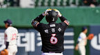 [OSEN=부산, 이석우 기자] 9일 부산 사직구장에서 2023 신한은행 SOL KBO리그 롯데 자이언츠와 KT 위즈의 경기가 열렸다. KT 위즈 박경수가 7회초 2사 1루 잘 맞은 타구가 롯데 자이언츠 김민석에게 잡히자 머리를 감싸고 아쉬워하고 있