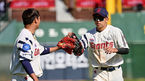 [OSEN=부산, 이석우 기자] 9일 부산 사직구장에서 2023 신한은행 SOL KBO리그 롯데 자이언츠와 KT 위즈의 경기가 열렸다. 롯데 자이언츠 김민석이 7회초 2사 1루 KT 위즈 박경수의 안타성 타구를 잡고 나균안의 감사 인사를 받고 있다. 2