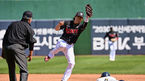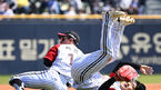 [OSEN=잠실, 민경훈 기자] 9일 오후 서울 잠실야구장에서 ‘2023 신한은행 SOL KBO리그’ LG 트윈스와 삼성 라이온즈의 경기가 열렸다.2회말 무사 주자 1,2루 LG 서건창의 희생번트때 삼성 선발 수아레즈가 1루로 송구하고 있다. 2023.04.0