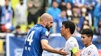 [OSEN=수원, 이대선 기자] 15일 오후 경기 수원월드컵경기장에서 하나원큐 K리그1 수원 삼성 블루윙즈와 제주 유나이티드의 경기가 열렸다.전반 제주 구자철이 반칙에 대해 수원 뮬리치에 강하게 항의하고 있다. 2023.04.15 /sunday@osen