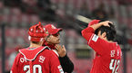 [OSEN=수원, 최재현 기자] 18일 오후 수원 KT위즈파크에서 2023 신한은행 SOL KBO리그 KT 위즈와 SSG 랜더스의 경기가 열렸다.4회 말 1사 상황 KT 장성우가 좌월 솔로 홈런을 치고 더그아웃에 들어와 동료들의 축하를 받고 있다. 2023.04.18 /h