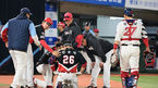 [OSEN=부산, 이석우 기자] 18일 부산 사직구장에서 2023 신한은행 SOL KBO리그 롯데 자이언츠와 KIA 타이거즈의 경기가 열렸다. KIA 타이거즈 한승택이 8회초 무사 1루 롯데 자이언츠 구승민의 투구에 맞고 괴로워하고 있다. 2023.04.18 / fo