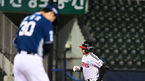 [OSEN=잠실, 최규한 기자] 18일 오후 서울 잠실야구장에서 ‘2023 신한은행 SOL KBO리그’ LG 트윈스와 NC 다이노스의 경기가 열렸다.8회말 1사 2루 상황 LG 오스틴이 동점 좌월 투런포를 날리고 홈을 밟으며 기뻐하고 있다. 2023.04.18 / drea