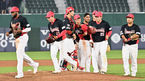 [OSEN=부산, 이석우 기자] 19일 부산 사직구장에서 2023 신한은행 SOL KBO리그 롯데 자이언츠와 KIA 타이거즈의 경기가 열렸다. KIA 타이거즈 선수들이 롯데 자이언츠에 6-0으로 완승하고 기쁨을 나누고 있다. 2023.04.19 / foto0307@osen.co.kr