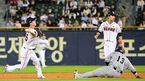 [OSEN=잠실, 최규한 기자] 3일 오후 서울 잠실야구장에서 ‘2023 신한은행 SOL KBO리그’ 두산 베어스와 한화 이글스의 경기가 열렸다.6회초 1사 1, 2루 상황 한화 문현빈의 병살타 때 두산 유격수 전민재가 주자 최재훈을 포스아웃 시