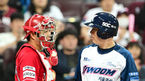 [OSEN=고척, 김성락 기자] 5일 오후 서울 고척스카이돔에서 ‘2023 신한은행 SOL KBO리그’ 키움 히어로즈와 SSG 랜더스의 경기가 열렸다.3회말 2사 1루 키움 이원석이 삼진아웃된 뒤 SSG 포수 김민식과 이야기를 나누고 있다. 2023.05.05 /k