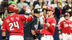 [OSEN=고척, 민경훈 기자] 6일 오후 서울 고척스카이돔에서 ‘2023 신한은행 SOL KBO리그’ 키움 히어로즈와 SSG 랜더스의 경기가 열렸다.6회초 1사 SSG 최주환이 우월 솔로 홈런을 날린 후 덕아웃에서 김원형 감독의 축하를 받고 있다.