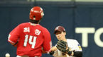 [OSEN=고척, 민경훈 기자] 6일 오후 서울 고척스카이돔에서 ‘2023 신한은행 SOL KBO리그’ 키움 히어로즈와 SSG 랜더스의 경기가 열렸다.4회초 무사 주자 1,2루 SSG 에레디아의 유격수 앞 병살타때 키움 2루수 김혜성이 2루에서 SSG 최정