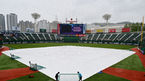 [OSEN=부산, 손찬익 기자] 6일 삼성-롯데전이 열릴 예정인 사직구장. 이날 오전부터 굵은 비가 내리고 있다. 이틀 연속 우천 취소 가능성이 높아지는 분위기다.오후 2시 현재 내야에 덮인 대형 방수포 위로 비가 고이고 있고 저녁