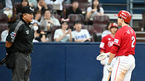 [OSEN=고척, 민경훈 기자] 7일 오후 서울 고척스카이돔에서 ‘2023 신한은행 SOL KBO리그’ 키움 히어로즈와 SSG 랜더스의 경기가 열렸다.연장 10회초 2사 주자 1루 SSG 박성한이 타석에서 삼진아웃을 당한 후 윤상원 구심에게 항의를 하
