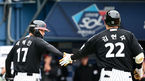 [OSEN=잠실, 조은정 기자] 7일 오후 서울 잠실야구장에서 ‘2023 신한은행 SOL KBO리그’ 두산 베어스와 LG 트윈스의 경기가 열렸다.1회초 2사 1루 LG 오지환의 우월 1타점 적시 2루타에 김현수가 득점을 올리자 염경엽 감독이 축하를 건