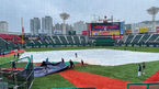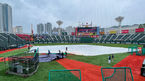 [OSEN=부산, 이석우 기자] 7일 부산 사직구장에서 2023 신한은행 SOL KBO리그 롯데 자이언츠와 삼성 라이온즈의 경기가 열린다. 소강 상태를 보이던 비가 내리자 롯데 관계자들이 사직야구장 내야에 방수포를 깔고 있다. 2023.05.07 / foto