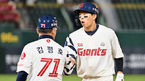 [OSEN=부산, 이석우 기자] 9일 부산 사직구장에서 2023 신한은행 SOL KBO리그 롯데 자이언츠와 두산 베어스의 경기가 열렸다. 두산 베어스 양찬열이 8회초 박계범의 적시타때 득점을 올리고 이승엽 감독과 하이파이브를 하고 있다. 202