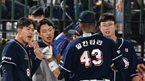 [OSEN=부산, 이석우 기자] 9일 부산 사직구장에서 2023 신한은행 SOL KBO리그 롯데 자이언츠와 두산 베어스의 경기가 열렸다. 두산 베어스 이승엽 감독이 7회초 1사 2루 정수빈의 1타점 적시타 때 득점을 올린 이유찬과 하이파이브를