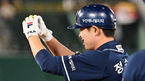 [OSEN=부산, 이석우 기자] 9일 부산 사직구장에서 2023 신한은행 SOL KBO리그 롯데 자이언츠와 두산 베어스의 경기가 열렸다. 두산 베어스 정수빈이 7회초 1사 2루 1타점 적시타를 치고 세리머니를 하고 있다. 2023.05.09 / foto0307@osen.co.kr