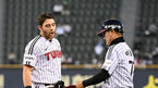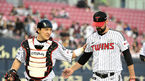 [OSEN=잠실, 이대선 기자] 9일 오후 서울 잠실야구장에서 ‘2023 신한은행 SOL KBO리그’ LG 트윈스와 키움 히어로즈의 경기가 열렸다.3회초 수비를 마친 LG 박동원과 플럿코가 더그아웃으로 향하며 인사를 하고 있다. 2023.05.09 /sunday@os