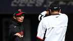 [OSEN=잠실, 이대선 기자] 9일 오후 서울 잠실야구장에서 ‘2023 신한은행 SOL KBO리그’ LG 트윈스와 키움 히어로즈의 경기가 열렸다.경기에 앞서 LG 박동원이 박경완 코치와 이야기를 나누고 있다. 2023.05.09 /sunday@osen.co.kr