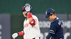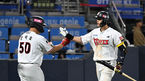 [OSEN=부산, 이석우 기자] 10일 부산 사직구장에서 2023 신한은행 SOL KBO리그 롯데 자이언츠와 두산 베어스의 경기가 열렸다. 롯데 자이언츠 노진혁이 7회초 1사 2루 유강남의 1타점 우전 적시 2루타 때 득점을 올리고 하이파이브를