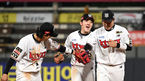 [OSEN=부산, 이석우 기자] 10일 부산 사직구장에서 2023 신한은행 SOL KBO리그 롯데 자이언츠와 두산 베어스의 경기가 열렸다. 롯데 자이언츠 구승민이 8회초 고승민과 사인을 교환하고 있다. 2023.05.10 / foto0307@osen.co.kr