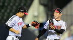 [OSEN=잠실, 지형준 기자] 10일 오후 서울 잠실야구장에서 ‘2023 신한은행 SOL KBO리그’ LG 트윈스와 키움 히어로즈의 경기가 열렸다.6회초 1사 1루에서 LG 김민성, 오지환이 키움 김혜성을 2루 땅볼 병살 처리하며 기뻐하고 있다. 2023.
