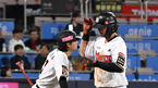 [OSEN=수원, 이대선 기자] 10일 오후 수원 KT위즈파크에서 2023 신한은행 SOL KBO리그 KT 위즈와 NC 다이노스의 경기가 열렸다.4회말 1사 1,3루에서 KT 문상철이 NC 박세혁의 견제구가 빠지자 득점을 올리고 있다. 2023.05.10 /sunday@osen.co.kr