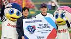 [OSEN=부산, 이석우 기자] 10일 부산 사직구장에서 2023 신한은행 SOL KBO리그 롯데 자이언츠와 두산 베어스의 경기가 열렸다. 롯데 자이언츠 나균안이 생애 첫 KBO리그 4월 월간 최우수선수(MVP) 시상식을 갖고 있다. 2023.05.10 / foto0307@ose