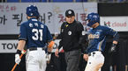 [OSEN=수원, 이대선 기자] 10일 오후 수원 KT위즈파크에서 2023 신한은행 SOL KBO리그 KT 위즈와 NC 다이노스의 경기가 열렸다.8회초 KT 김재윤과 김준태가 폭투에 아쉬워하고 있다. 2023.05.10 /sunday@osen.co.kr