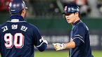 [OSEN=부산, 이석우 기자] 11일 부산 사직구장에서 2023 신한은행 SOL KBO리그 롯데 자이언츠와 두산 베어스의 경기가 열렸다. 두산 베어스 정수빈이 6회초 1타점 적시타를 치고 하이파이브를 하고 있다. 2023.05.11 / foto0307@osen.co.kr
