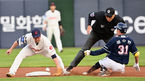 [OSEN=부산, 이석우 기자] 11일 부산 사직구장에서 2023 신한은행 SOL KBO리그 롯데 자이언츠와 두산 베어스의 경기가 열렸다. 두산 베어스 정수빈이 1회초 좌익수 쪽 안타를 치고 2루까지 내달려 롯데 자이언츠 안치홍이 공 놓치는 사