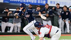 [OSEN=부산, 이석우 기자] 11일 부산 사직구장에서 2023 신한은행 SOL KBO리그 롯데 자이언츠와 두산 베어스의 경기가 열렸다. 롯데 이학주가 8회초 2사 2, 3루 투수 견제에 걸린 두산 베어스 이유찬을 잡으려 협살을 시도했으나 송구