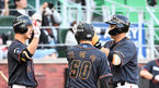 [OSEN=인천, 민경훈 기자] 12일 오후 인천 SSG랜더스필드에서 ‘2023 신한은행 SOL KBO리그’ SSG 랜더스와 한화 이글스의 경기가 열렸다.1회초 1사 주자 1,2루 한화 채은성의 중월 선취 스리런 홈런때 홈을 밟은 한화 이원석이 덕아웃