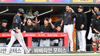 [OSEN=인천, 조은정 기자]14일 오후 인천 SSG랜더스필드에서 2023 신한은행 SOL KBO리그 SSG 랜더스와 한화 이글스의 경기가 열렸다. 연장 12회초 역전 1타점 적시 2루타를 날린 한화 김인환이 이닝을 마친 뒤 더그아웃에서 축하를 받고