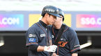 [OSEN=인천, 조은정 기자]14일 오후 인천 SSG랜더스필드에서 2023 신한은행 SOL KBO리그 SSG 랜더스와 한화 이글스의 경기가 열렸다. 연장 11회초 무사 1루 한화 고동진 코치가 박정현에게 다가가 귓속말로 작전을 지시하고 있다. 2023.05.